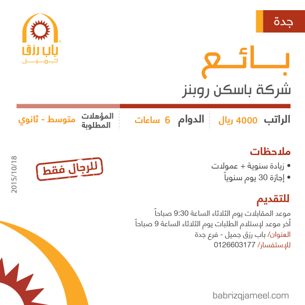 شركة باسكن روبنز وظائف بائعين في جدة رواتب 4000 ريال
